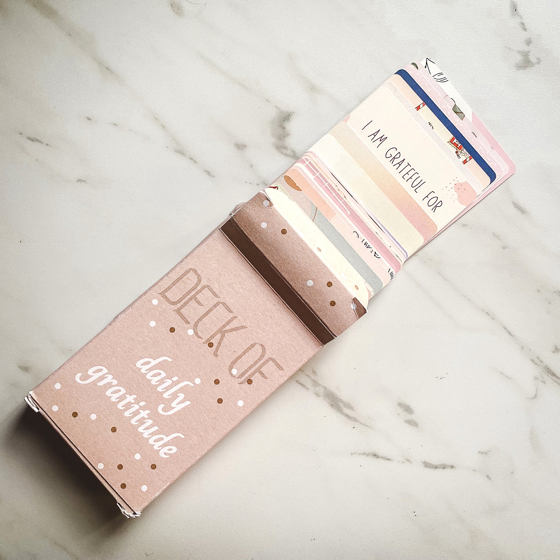 The perfect tool to inspire daily gratitude! This deck includes 54 beautifully designed cards, each with a unique gratitude quote or prompt to keep you focused on the positive things in your life. Whether you're using them as daily affirmations or journal prompts, the Gratitude Deck is the perfect way to celebrate the little things and stay inspired. Each card is durable and reusable, so you can revisit your favorite prompts over and over again. Start practicing gratitude every day with the Gratitude Deck by Samantha March!