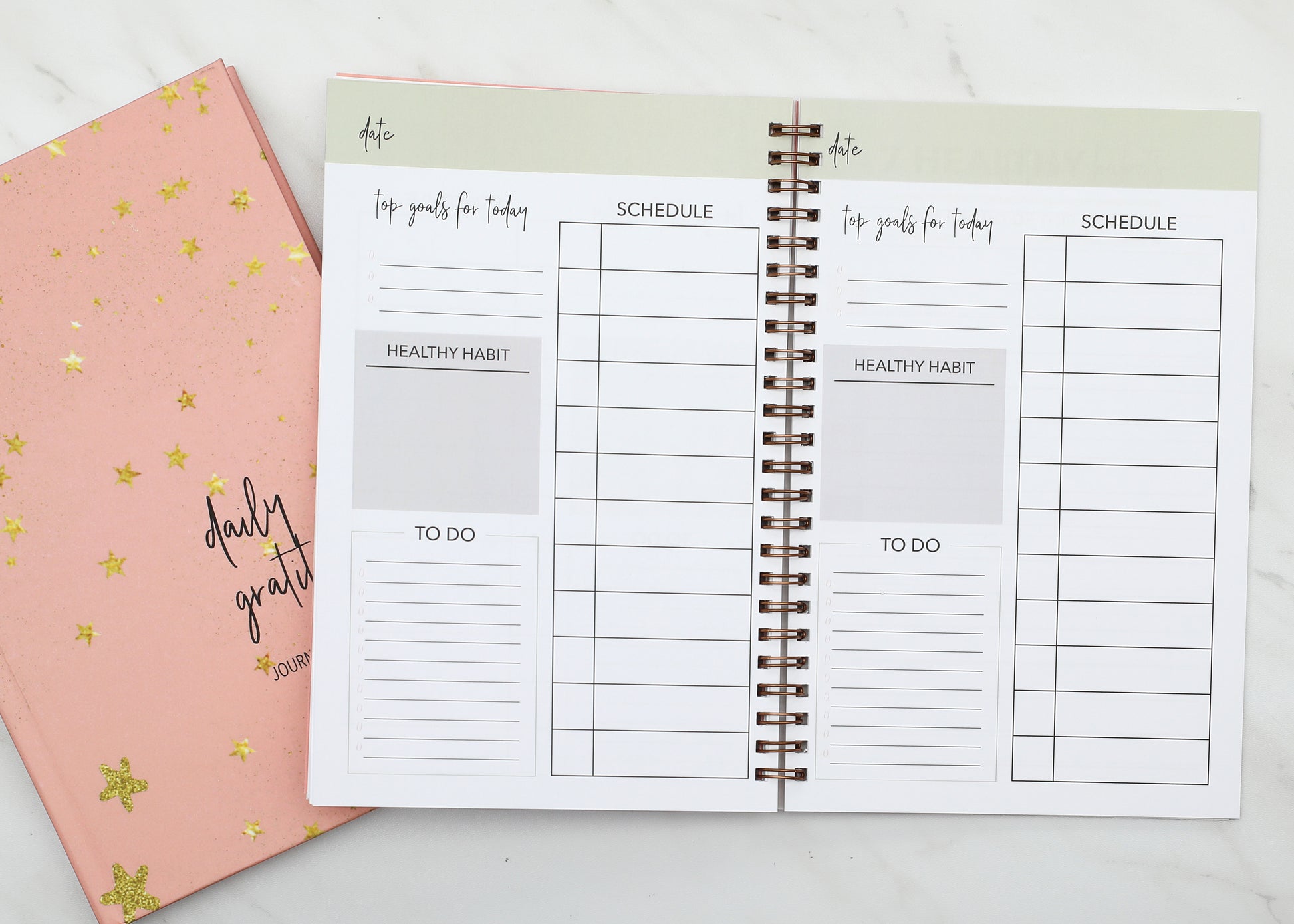 Start inspired with this 90 day, undated daily planner. In addition to daily pages for your schedule, top goals and do list, this planner is focused on creating daily healthy habits. Includes monthly break down pages to create your goals at glance, choose a word of the month, and prompts to keep you inspired. Inside is also a month at glance calendar and word searches along the way.